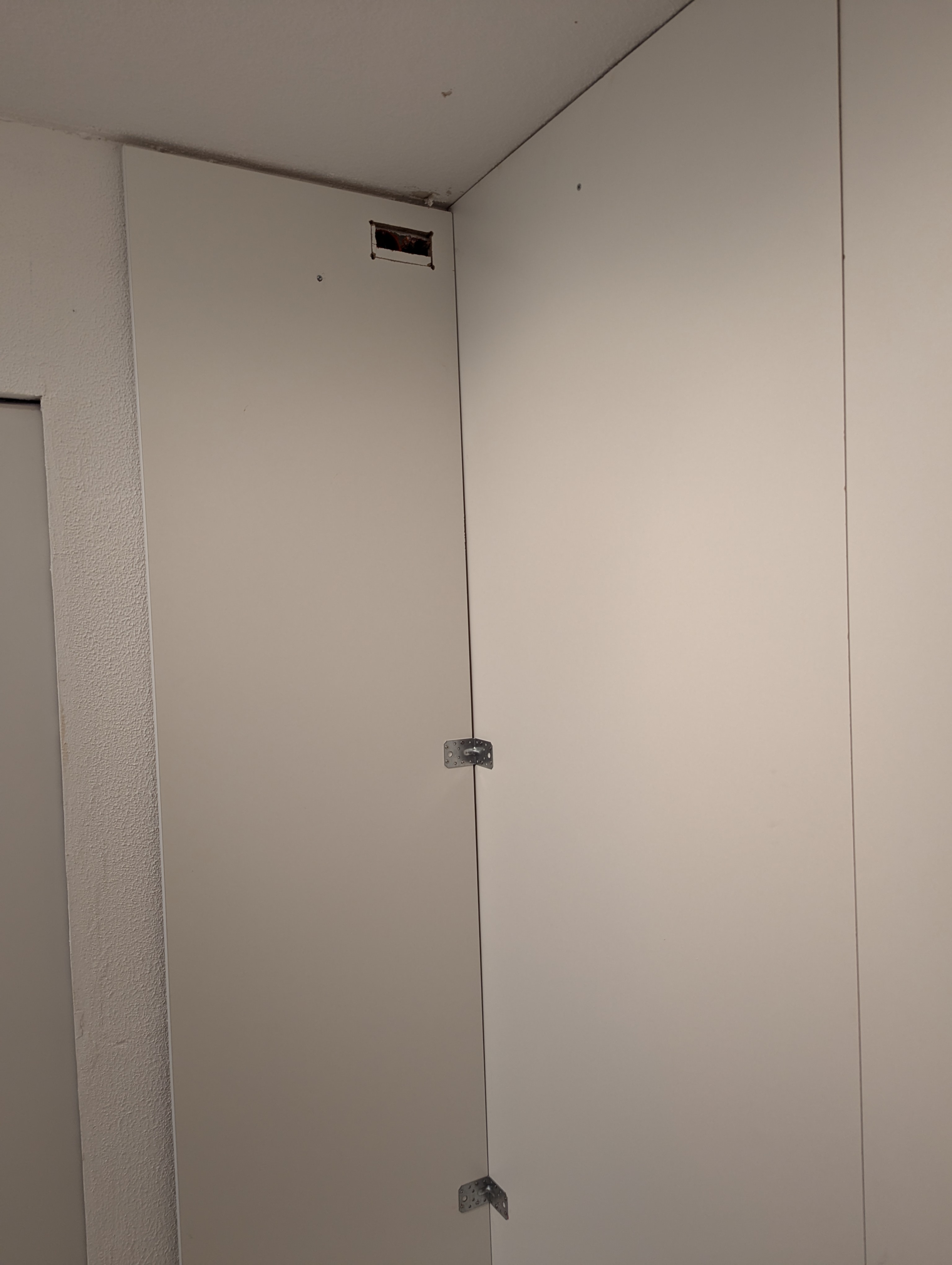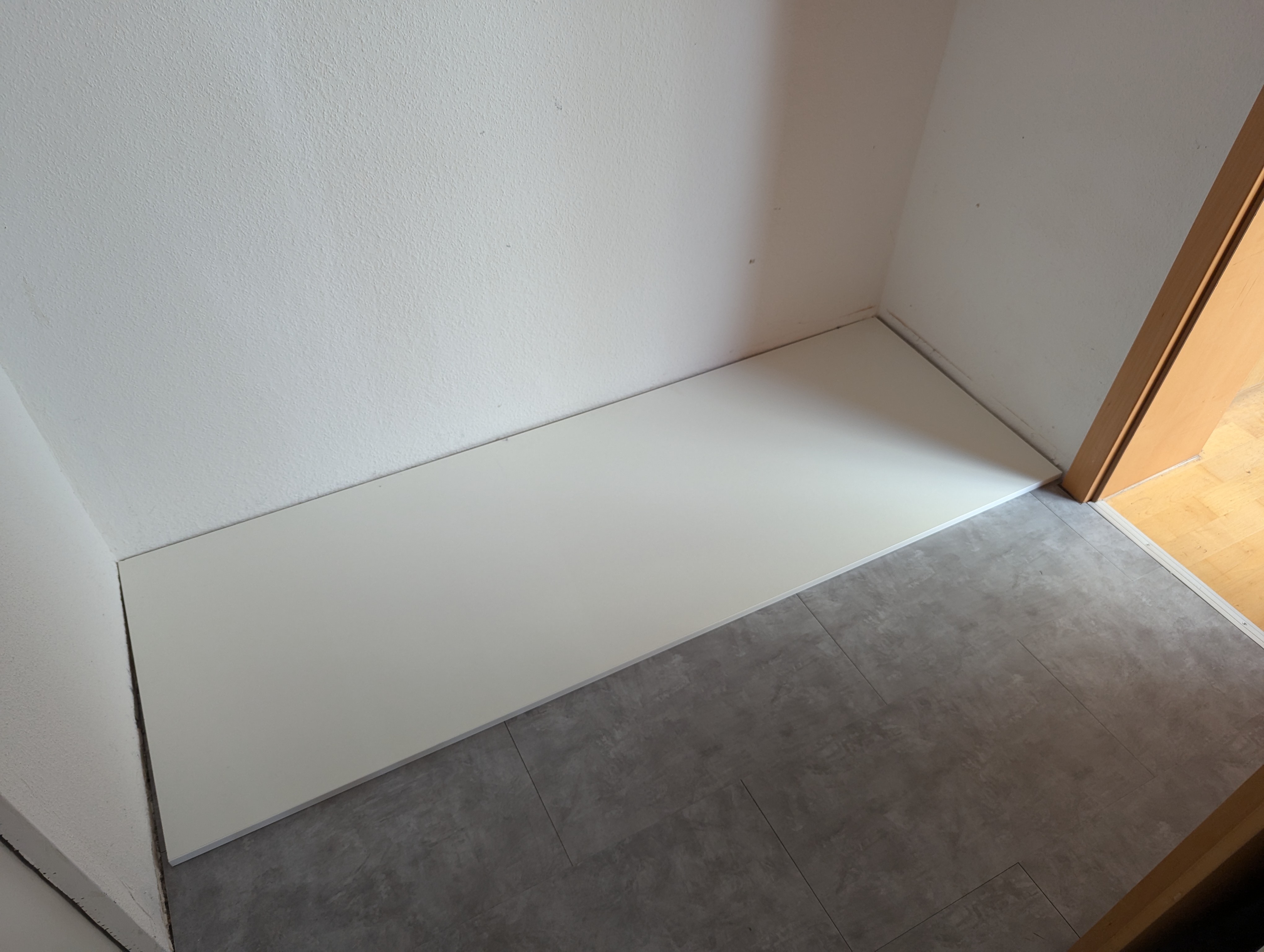 Für mein Hobby 3D Druck brauche ich einen Platz um den Drucker (und evt. noch weitere folgende) unterzubringen. Die Idee: Ich nutze die ca 1,80m x 2,40m große Niesche in meinem Arbeitszimmer und baue mir dort selbst einen Einbauschrank. In voller Höhe und Breite. Das bedeutet aber auch (was mir erst später bewusst wurde), dass ich nicht mit den typischen Holzdübel Verbindungen arbeiten kann, weil die Schrankwände ja die volle Höhe nutzen und ich sie nicht auf die Holzdübel stecken kann. Vorher zusammenbauen und dann dort hinschieben geht auch nicht, weil zu wenig Platz ist. Also blieb nur der Weg über viele Metallwinkel.