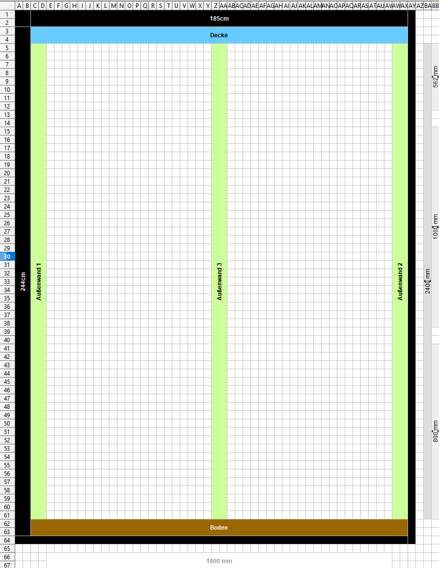 Also erstmal eine rudimentäre Planung in Excel gemacht und entsprechend Spanplatten besorgt. Es plagte mich anfangs die Frage welche Holzplatten ich nehmen soll... MDF? Multiplex? Spanplatten? Im Endeffekt sind es dann auch aus Kostengründen die Spanplatten geworden in 19mm Stärke. Robust, günstig und für so ein Anfängerprojekt geeignet.