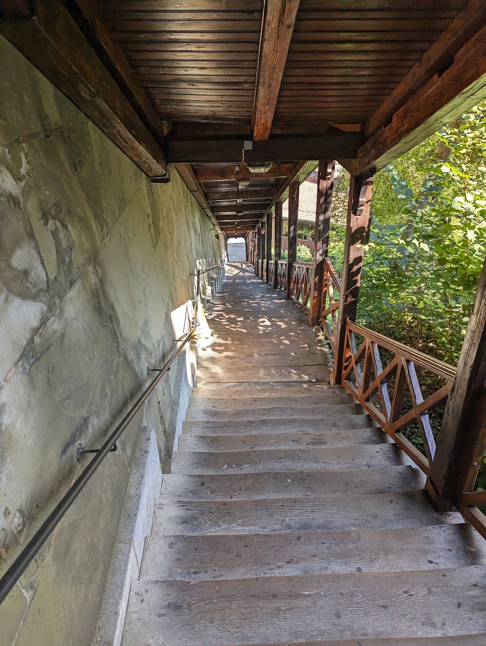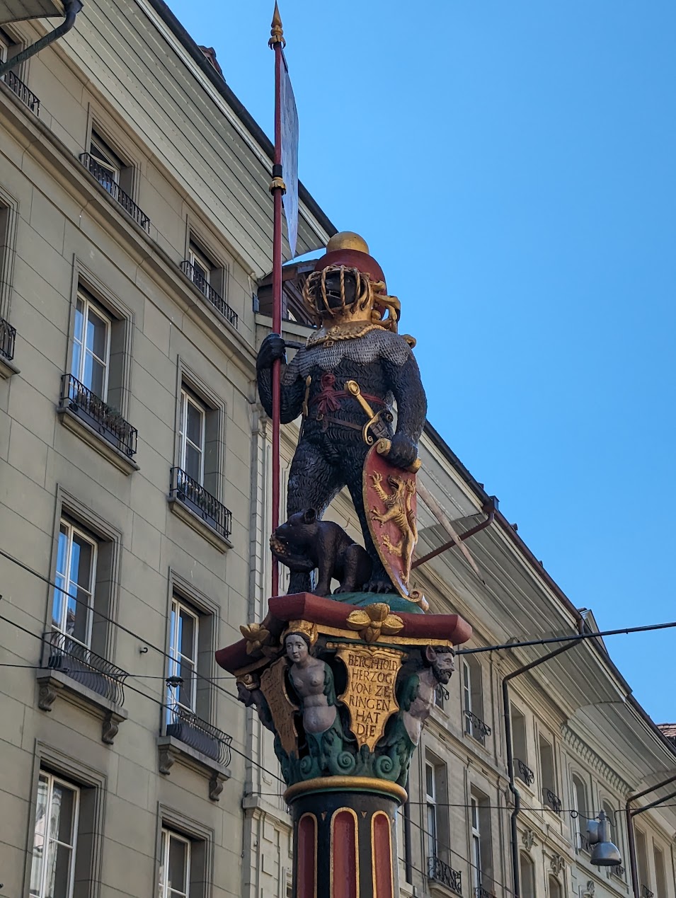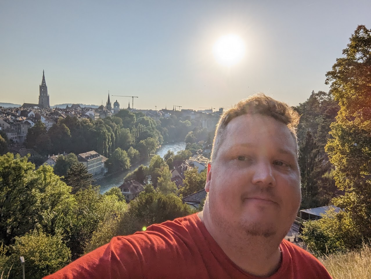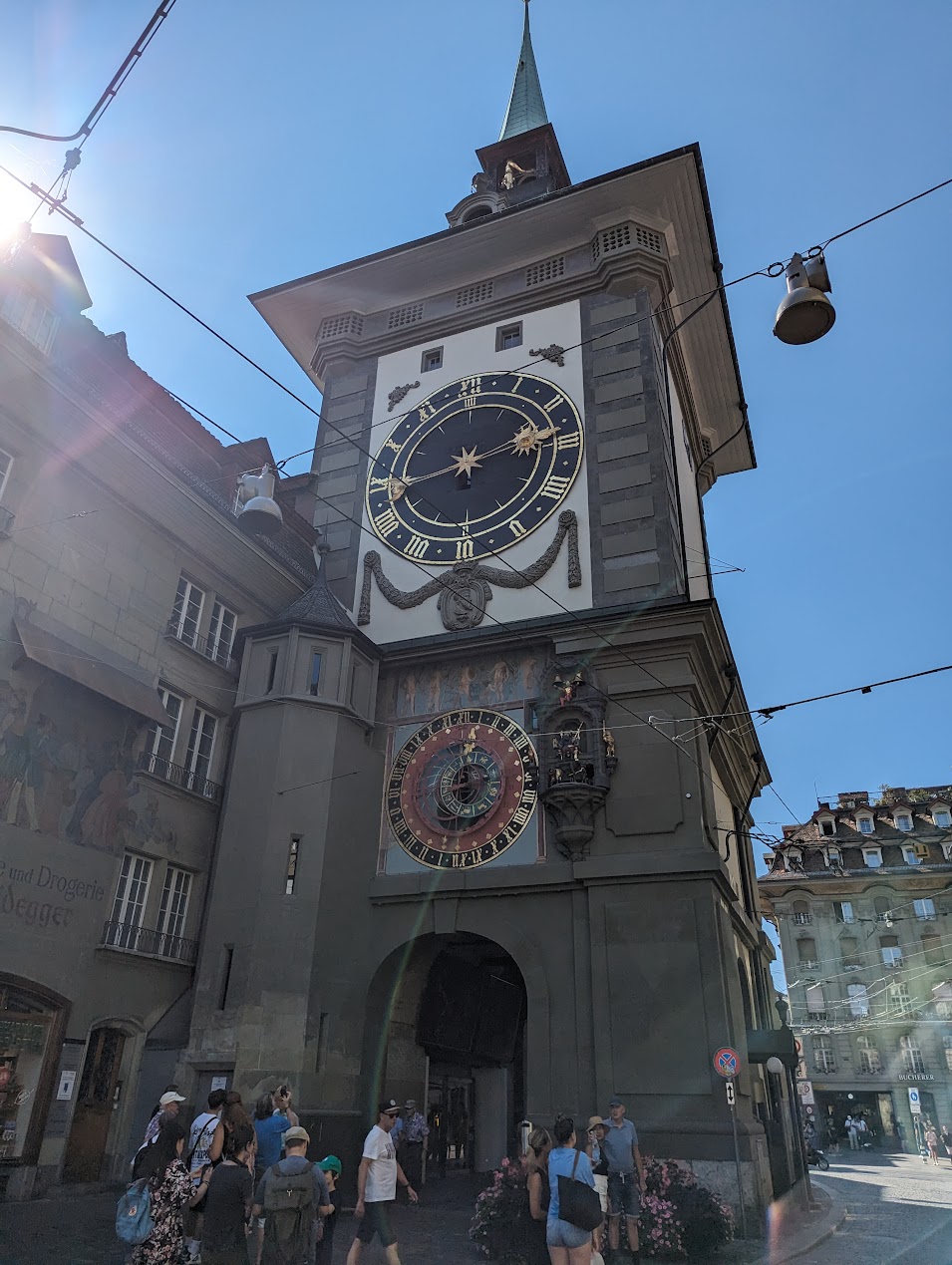 Am nächsten Tag in Bern waren die Geschäfte dann geöffnet. Dementsprechend war auch ganz schön was los in der Stadt. Jubel, Trubel und Hitze. Bern liegt am Hang und wenn man einmal unten am Flußufer ist, ist es echt nicht einfach wieder "nach oben" zu gelangen. Zum Glück haben wir eine kleine Drahtseilbahn gefunden, die uns das bergauf laufen abgenommen hat. Später beim Spaziergang zum Abendessen haben wir dann aber einen wundervollen Blick auf die Stadt bei Sonnenuntergang bekommen.
